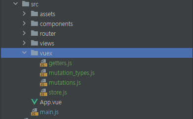 Vuex로 관리될 변수 혹은 데이터들을 위해 src 폴더 아래에 vuex 폴더를 추가하고 store.js 파일을 생성합니다.