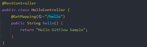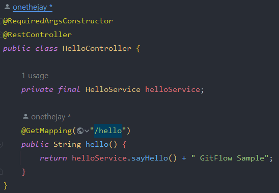 이제 develop에서 HelloController를 하나 만들어본다.