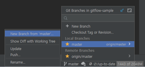 오른쪽 아래 master를 선택하면 메뉴가 나타난다.