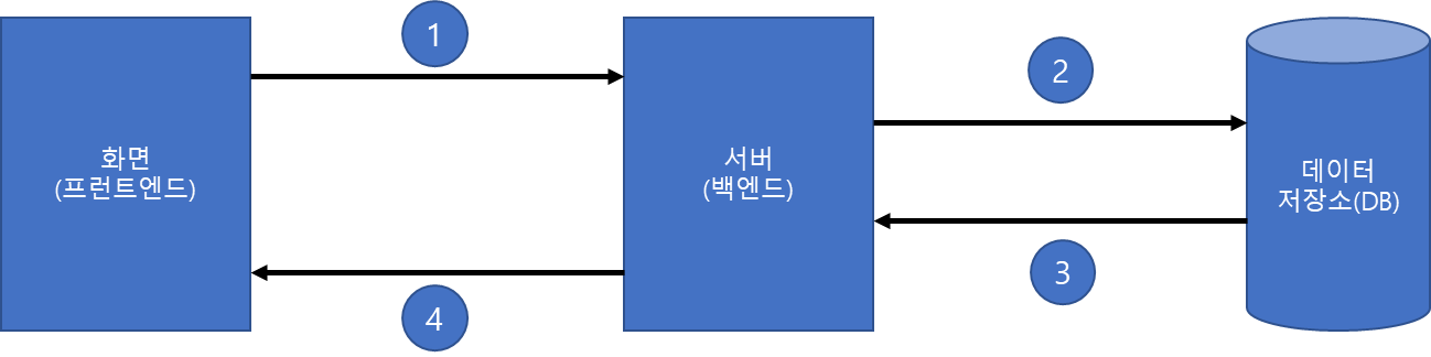 1. 화면(프런트엔드)에서 서버(백엔드)로 데이터를 요청한다.