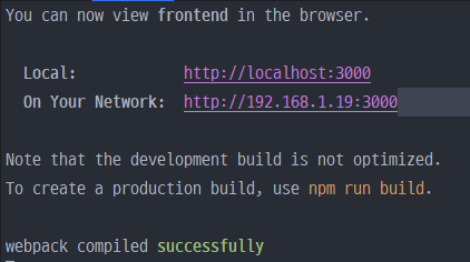 리액트 개발서버가 시작되면 웹 주소를 통해 브라우저에서 확인할 수 있습니다.