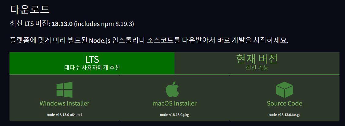 https://nodejs.org/ko/download/