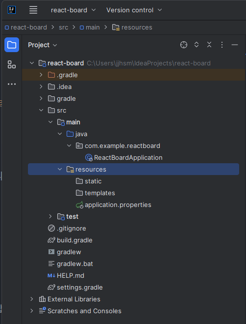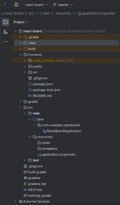 (리액트 프로젝트의 위치는 Springboot 프로젝트 루트 디렉토리 바로 아래 입니다.)