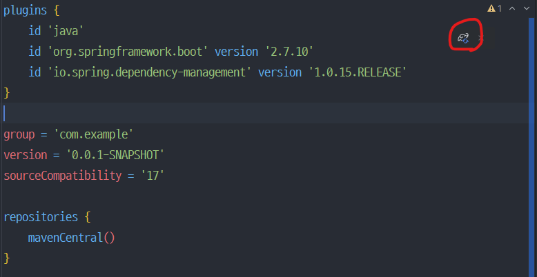 내용을 추가하고 빨간부분의 Load Gradle Changes를 꼭 눌러주셔야 프로젝트에 반영됩니다.