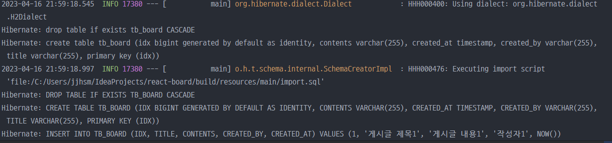 INSERT INTO TB_BOARD (IDX, TITLE, CONTENTS, CREATED_BY, CREATED_AT)