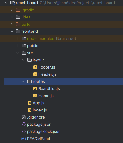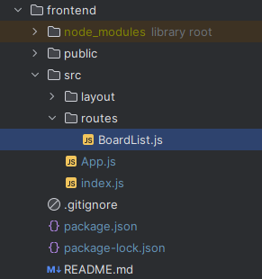이어서 라우팅할 페이지를 작업할 routes 디렉토리를 생성하고 BoardList.js 컴포넌트를 생성합니다.