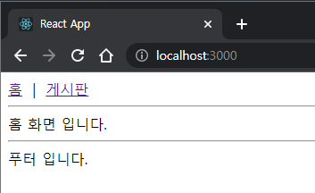 리액트에서 이동한 페이지의 내용을 출력하기 위해서는 리액트 라우터를 설치해야 합니다.