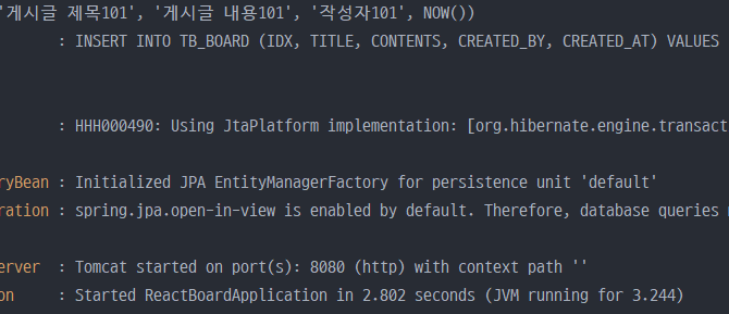 아래처럼 로그가 실행된다면 부팅이 완료된것입니다.