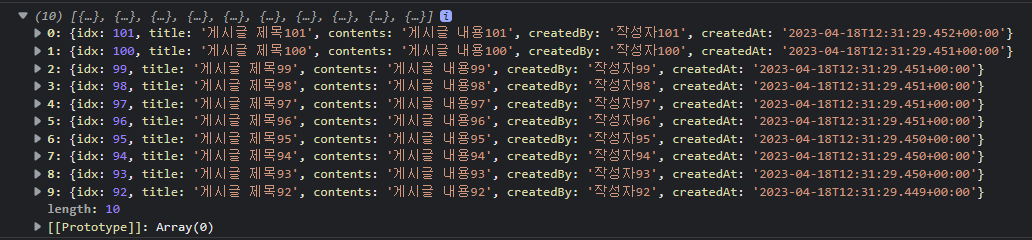 데이터를 정상적으로 호출하여 콘솔창에 출력되었습니다.