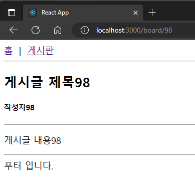 Board.js는 상세보기에 해당하는 데이터를 받아 화면에 출력할 컴포넌트 입니다.