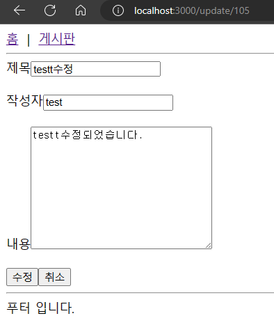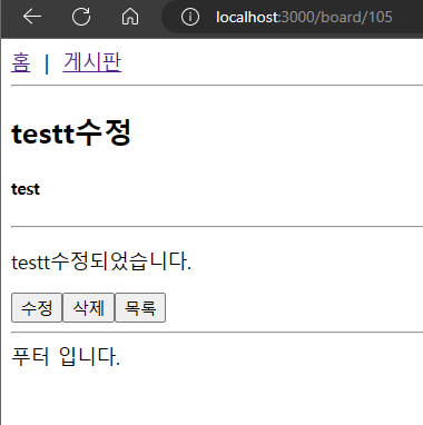 게시글이 수정된 것을 확인할 수 있습니다.
