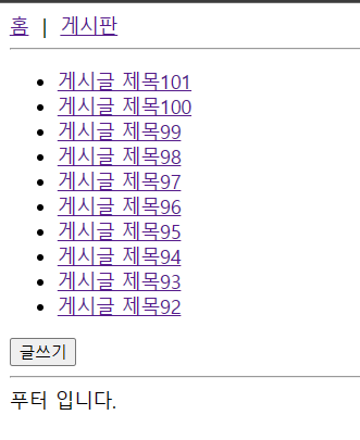 지난 포스팅까지 게시판 목록을 조회해서 화면에 출력하는 부분까지 개발했습니다.