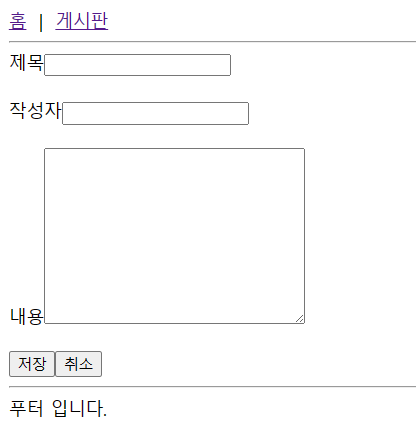 제목, 작성자, 내용에 데이터를 입력하고 저장을 누르면 리스트로 이동합니다.