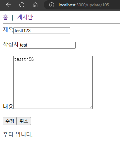 게시글 상세에서 수정 버튼 클릭시 아래처럼 데이터를 조회하여 input에 세팅하게 됩니다.