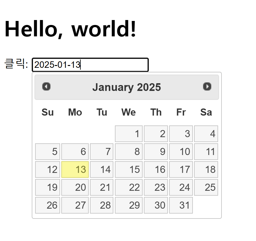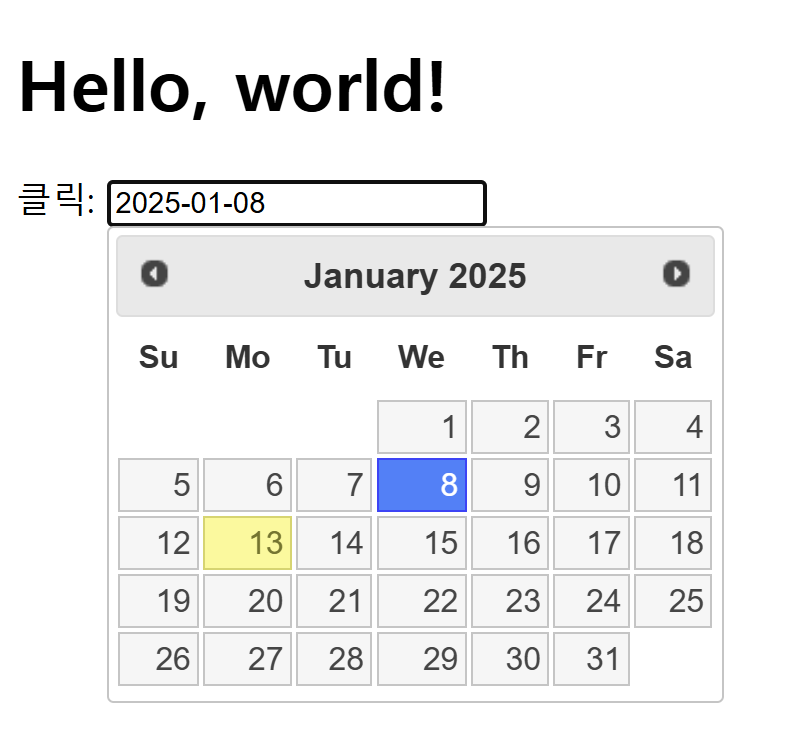 이제 입력창을 누르면 달력이 나타나도록 useEffect 안에 작성해보겠습니다.